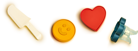 אם רוצים צורה שמחה אחרת פשוט מחליפים את הצורה על ידי ניתוק הידית מהדוחף והמיכל והרכבת דוחף ומיכל של הצורה השמחה הרצויה.
