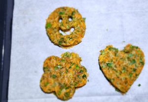 לוחצים את הידית מעל לתבנית ומניחים את הקציצה על הנייר אפיה, ממשיכים להכין עוד קציצות בצורות שמחות עד למילוי התבנית או גמר התערובת.