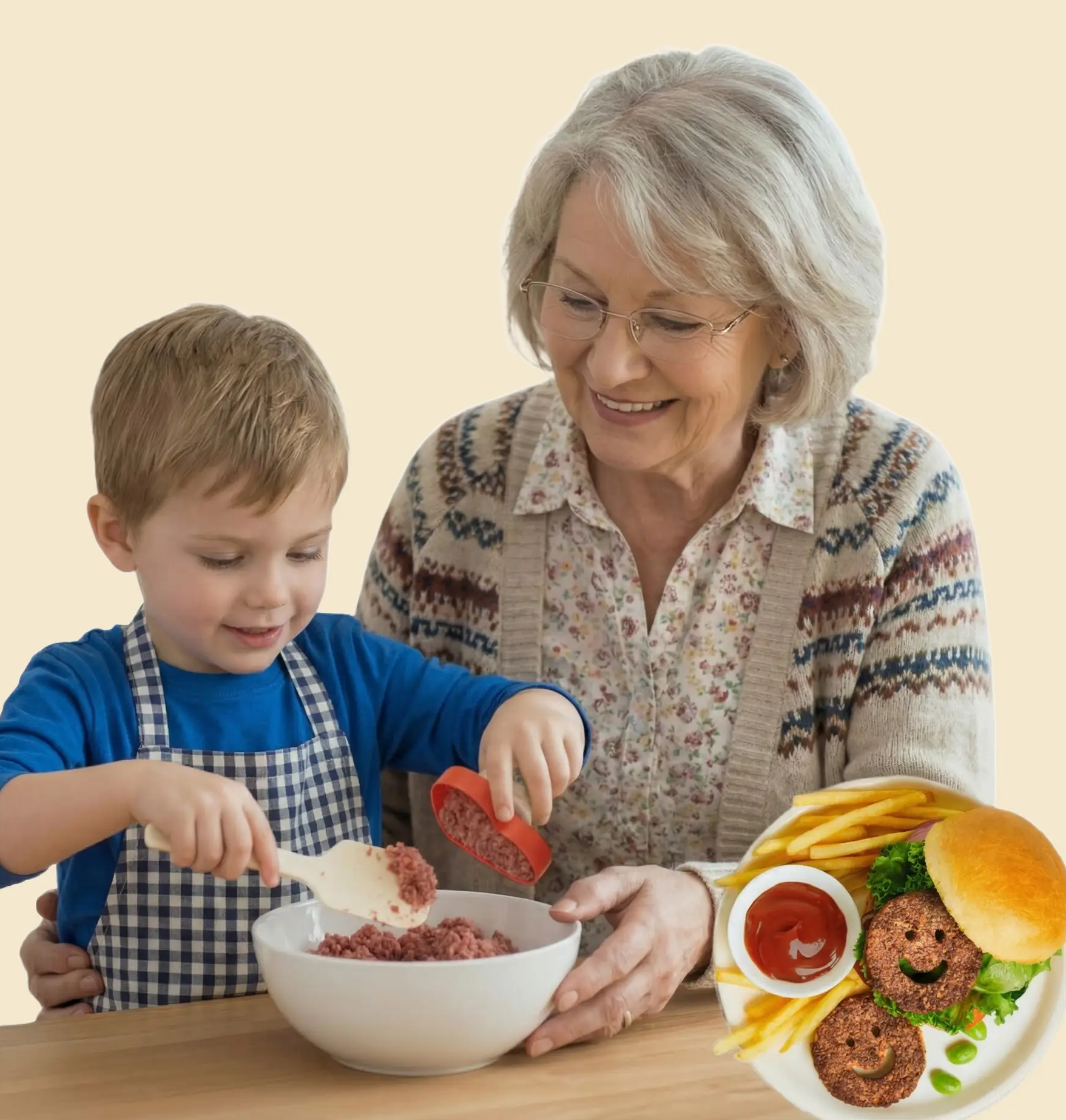 הנכדים שלך יוצרים בעצמם קציצות, לביבות והמבורגרים בצורות שמחות, גדלים במטבח שלך, לומדים עצמאות – וכל הזמן מחייכים.